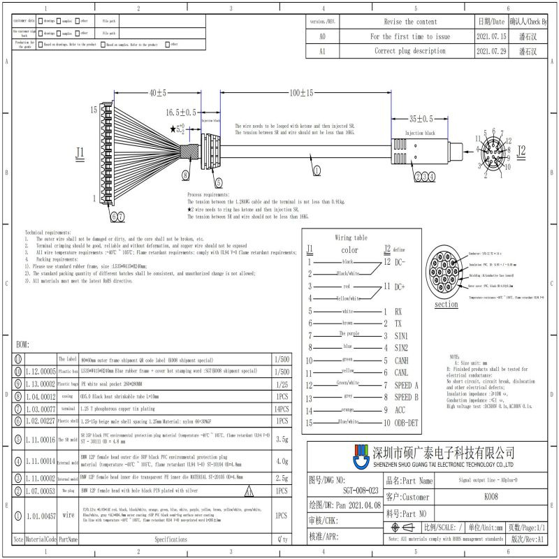 1.25 terminal TO 10P BMW connector cable